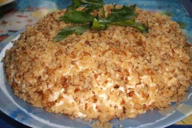 В завершение, сверху украшаем тертыми грецкими орехами.