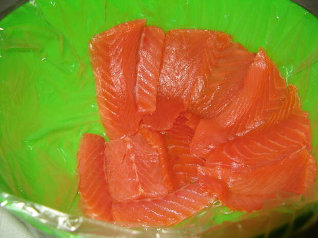 — красная рыба (филе, слабосоленая) — около 350 гр