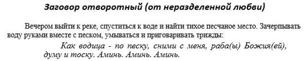 Пить такую воду желательно три раза в день в течение недели. Пример самоостуды: "Остывай, моя тоска любовная по рабу божьему (имя), остывай, сердечко мое маетное, успокаивайся. Отпускай, душа, боль любовную, да дай мне покой да гармонию". Остудные заговоры на воду читать также на убывающей луне, день недели для этого выберите понедельник, время - 0 часов, 6 часов, 13, 20 часов.