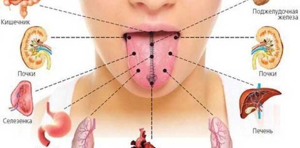 А если вы наблюдаете налет в различной области языка – вы сможете согласно картинке быстро выявить ранние или хронические симптомы своих заболеваний и более пристально обратить на них свое внимание.