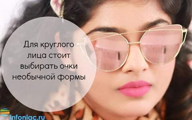 Человеку с таким лицом стоит попробовать примерить в первую очередь очки трапециевидной формы (вайфайеры); на женщинах с круглым лицом недурно могут смотреться "кошачьи" очки, очки с большим количеством углов и даже очки ассиметричной формы (есть и такие в продаже).