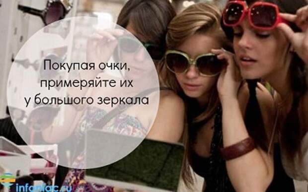 Солнцезащитные очки, которые защищают глаза от воздействия ультрафиолета, от ярких бликов (к примеру, от отражающихся от воды или снега лучей солнца), покупать в спонтанных местах продаж очков (на рынках, на остановках) категорически не рекомендуется.