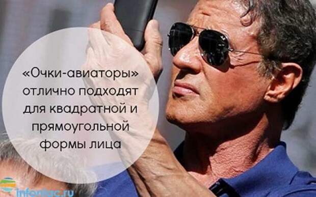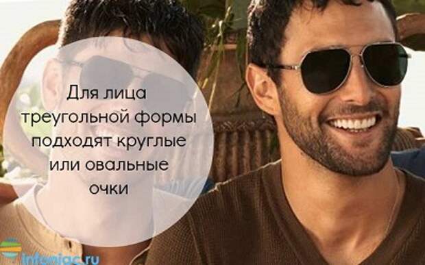 Неплохо на человеке с таким типом лица смотрятся "очки-авиаторы". Как известно, такие очки имеют форму, близкую к анатомической форме глазниц черепа (только раза в два меньше). Избегайте очков, типа гранды или броулайны, которые визуально сделают ваше лицо еще более тяжелым и угловатым.