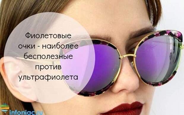 Наименее бесполезные в борьбе с солнечными лучами – фиолетовые линзы. Такие линзы легко пропускают ультрафиолет, поэтому очки с фиолетовыми линзами – это скорее модный аксессуар, чем защита для глаз. Чуть менее бесполезны зеленые линзы. А вот синие или голубые линзы отлично задерживают яркий свет, не искажая при этом цвета окружающего мира.