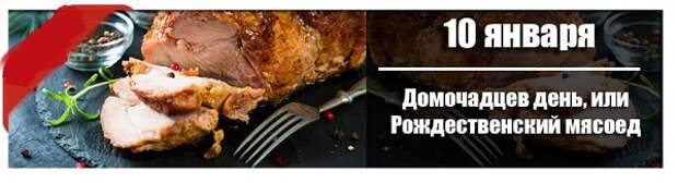 А вот уже 10 января начинается Домочадцев день. Этот день не считается православным праздником, поэтому в церкви не отмечается. Только в этот праздник можно было начинать есть мясо после длительного рождественского поста. К праздникам, предшествующим этому, христиане закалывали свой скот, поэтому к 10 января разнообразного мяса у них было более чем достаточно.