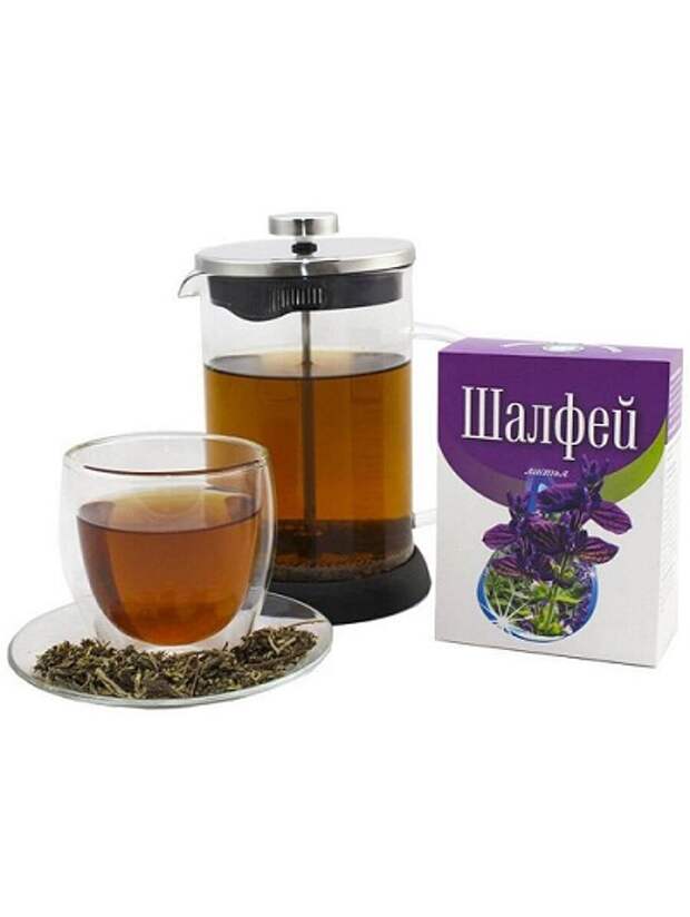 Чaй. Упoтрeблeниe чaя c шaлфeeм уcтрaняeт приливы и cпocoбcтвуeт cнижeнию пoтooтдeлeния.