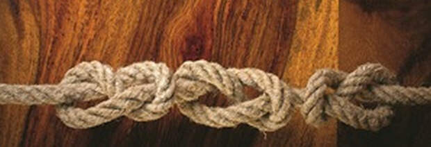 Завяжите на шнуре девять узлов. Общий порядок их на шнуре должен быть таков: 1—6—4—8— 3—7—5—9—2. То есть сначала завяжите первый узел на одном из концов шнура, второй — на другом конце, третий — посередине шнура, четвертый — посередине между первым и третьим, пятый — между третьим и вторым и т. д.