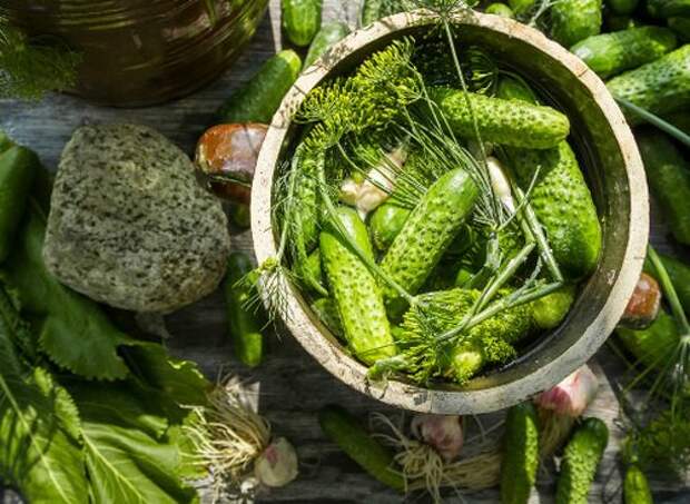 1. Для малосольных заготовок берите свежесобранные огурцы. У зеленцов срезают кончики со стороны цветка и со стороны плодоножки. Вымыв огурцы, их можно предварительно замочить на 1–2 часа в холодной воде. От замачивания в воде комнатной температуры огурцы могут начать дрябнуть. Заливать их лучше горячим рассолом, так как кипяток уплотняет ткани плодов.