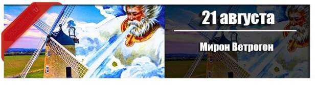 21 августа (по старому стилю 8 августа) – народно-христианское торжество, получившее название Григорий, день Мирона, Мирон Ветрогон.